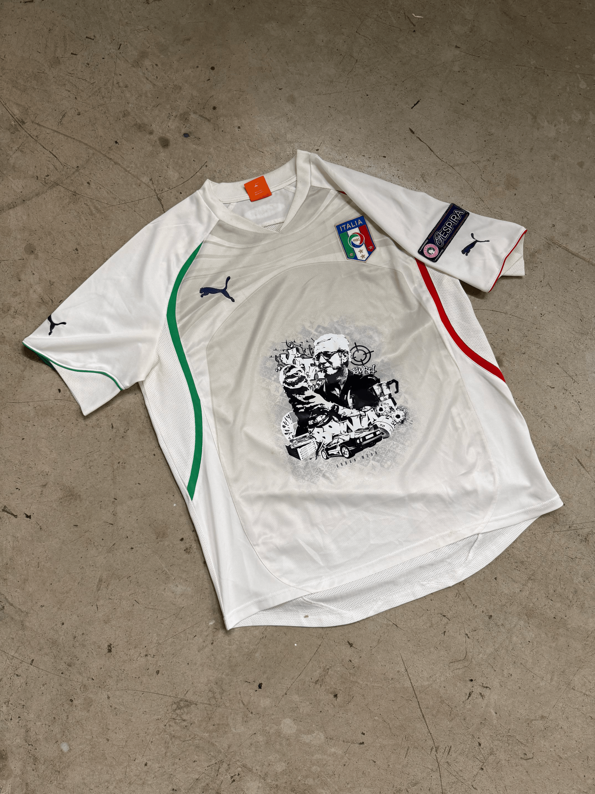 Custom print on Italia Puma Jersey + embroidered custom patch.